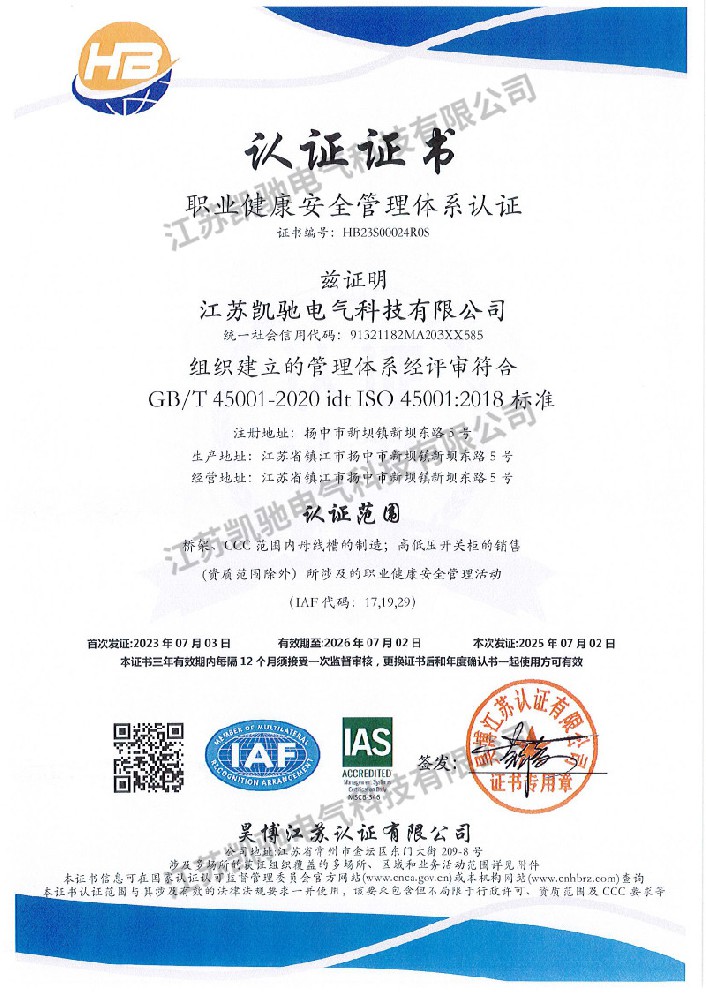 职业健康安全管理体系认证证书